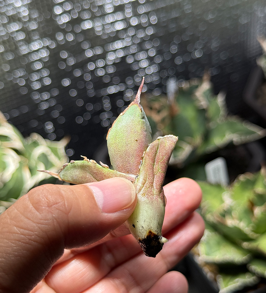 アガベマイトやアザミウマの被害、葉焼け、徒長、偽物を掴んだ失敗もあって、育成は決してスムーズではありません。