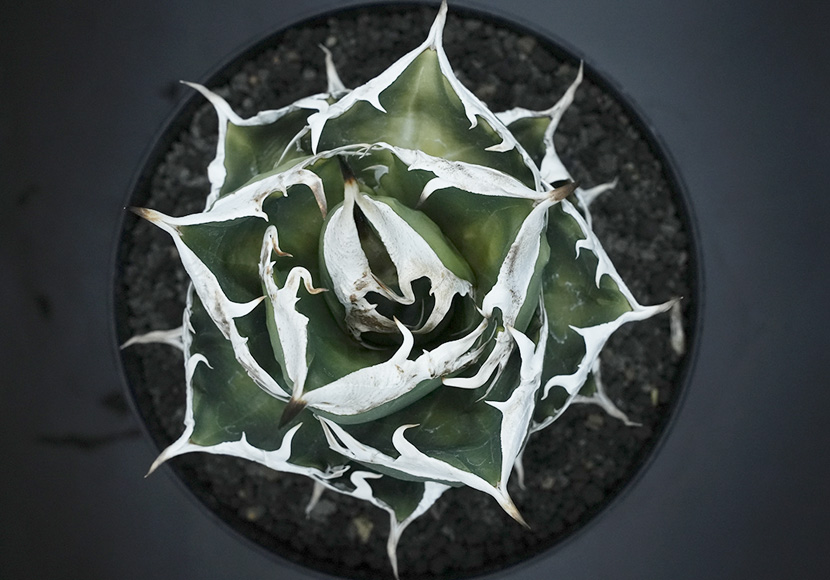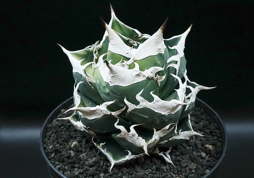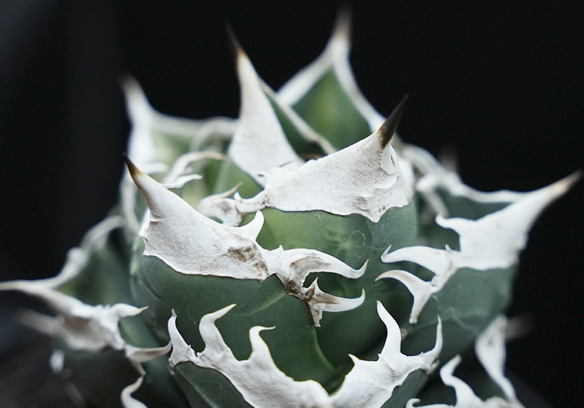 「SAD(South Africa Diamond)」は、アガベ・チタノタの選抜品種で、鋭く幅広な白い棘と、濃い緑の葉が特徴です。